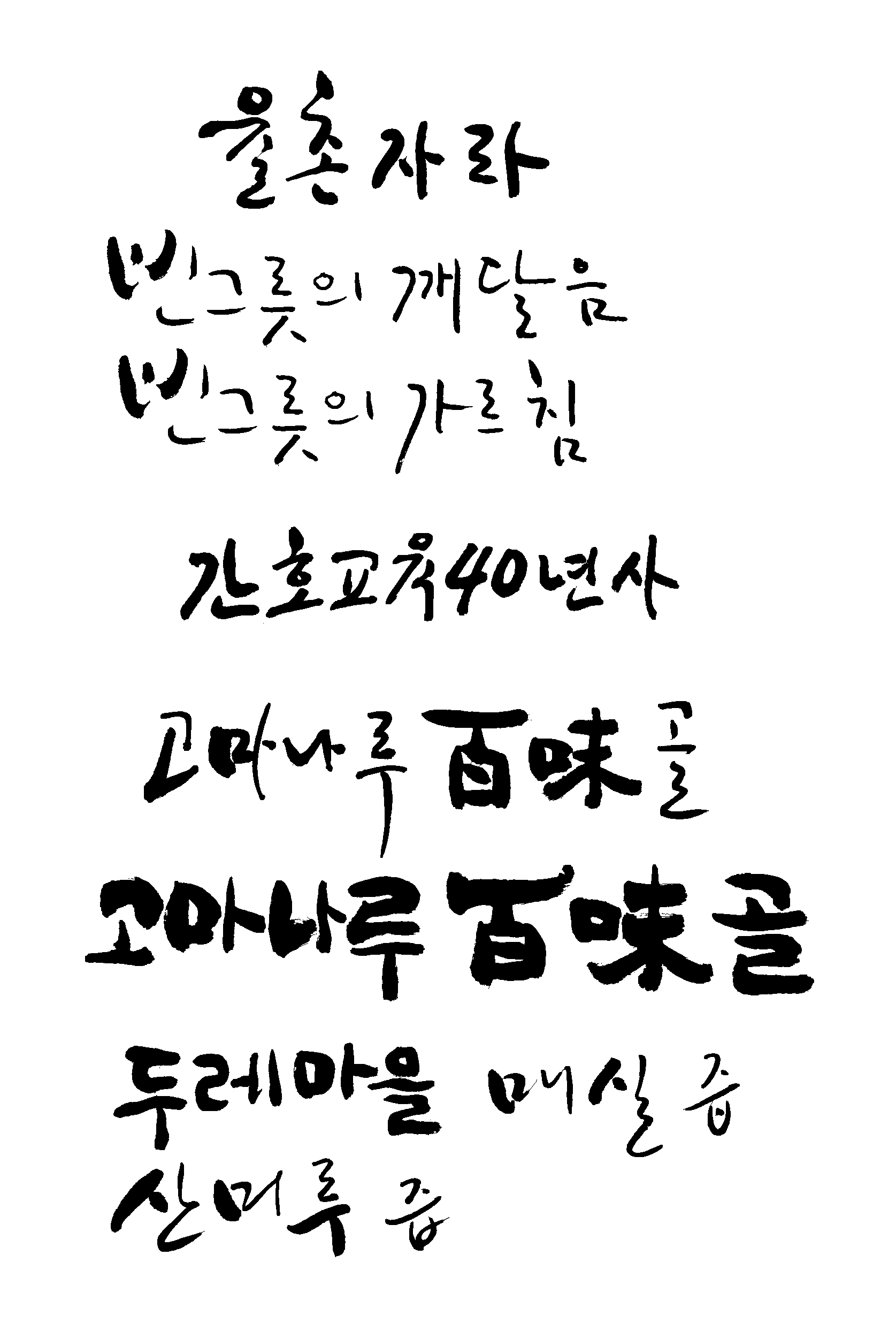 캘리모둠 예인 일반 5 7341 2009.02.21 00:21 의뢰하신 캘리를 모아 봤어요. 그리고 어디에 사용하것인지, 언제까지 필요 하신지, 원하시는 캘리 스타일은요? ( 참고 할 캘리그래피 샘플을 같이 올려 주시면 더 좋겠죠 ) 그리고 작업된 자료를 올려주시면 다음 작업에 도움이 많이 될듯 싶네요.