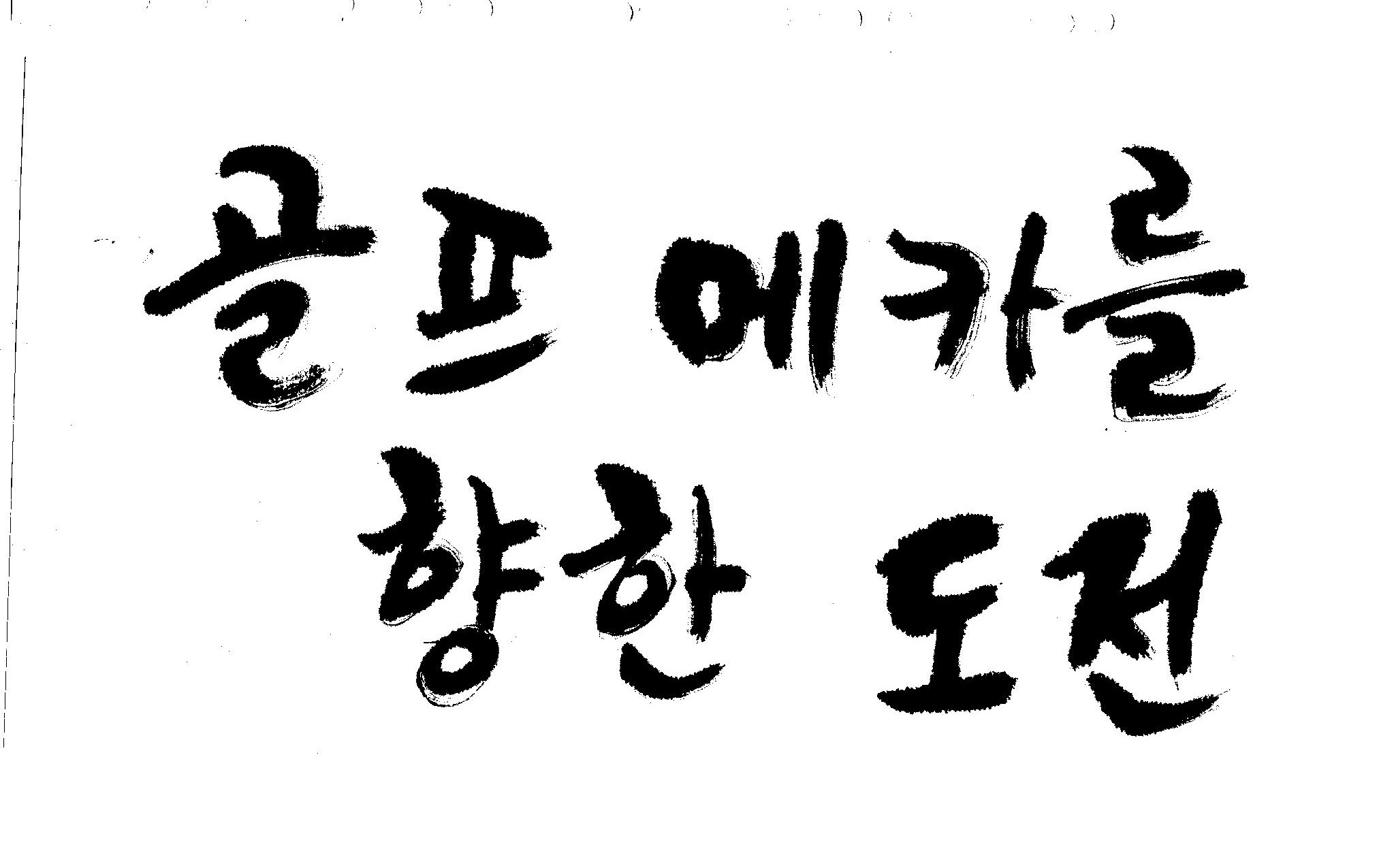 우경의 행복한 캘리세상-골프메카 김철호 일반 0 8777 2009.07.18 10:25 리듬감을 최대한 살리고 ㅡ 스포츠의 운동감과 밝음 기교섞인 획을 배제--일반적인 느낌 굵기변화를 통하여 도전 낱말을 강조 스타일은 비슷하지만 ...한 사람이 썼으니까 ㅎㅎㅎ 서로 다른 글꼴을 올린 것은... 비교하여 보시고... 편집자에게 선택권을 주는 것입니다